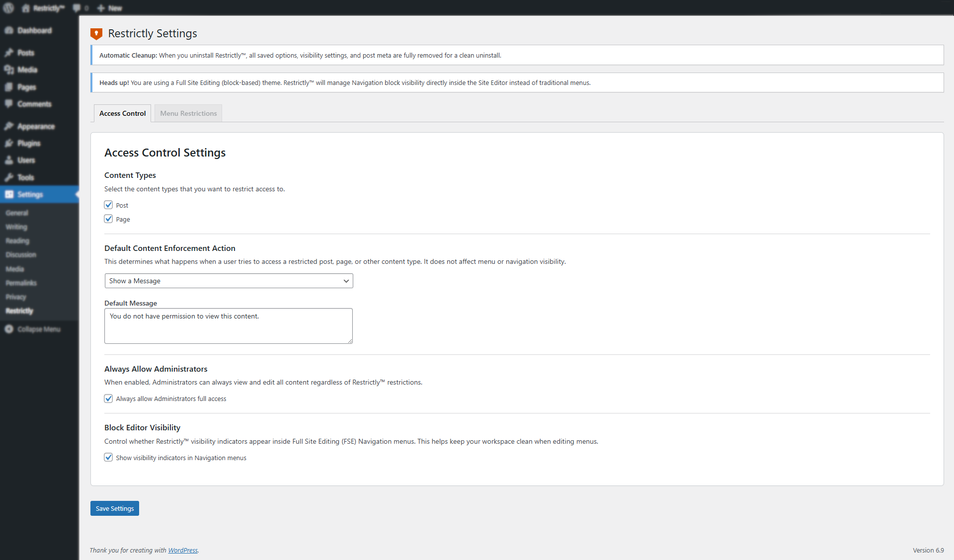 Restrictly™ is a performance-focused access control framework for WordPress. It delivers clean, predictable content restriction using login and role-based logic without heavy membership overhead. Restrictly™ Free sets the baseline – Restrictly™ Pro extends it with advanced rule engines and professional-grade controls.